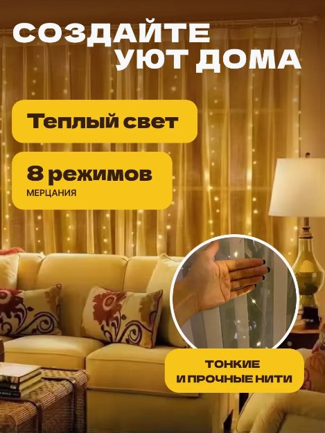 Гирлянда-штора росаВ данный момент этот товар отсутствует в продаже. Возможно, у нас найдется аналогичный или похожий товар здесь. Гирлянда-штора роса отличный выбор для вашей гостиной и кухни квартиры, так же и для дачи и загородного дома. С нашим новогодним украшением вы обрадуете не только себя, но и ребенка, гирлянда электрическая удивит его своей яркостью и качеством, ее можно использовать на стену или на окно, так же на зеркало и кровать. Гирлянда с пультом позволит включать и переключать режимы не вставая с дивана. Осенний и зимний новогодний декор вашего интерьера украсит помещение на новый год. Новогодняя гирлянда 3 × 3 метра лучшая альтернатива украшения на елку. Это идеальный атрибут для любого праздника. Гирляндой дождик можно украсить, сделать новогодний декор детской. Декоративный дождь красиво будет выглядеть на фото. Это просто находка для блогеров и людей, которым нравится создавать красивые фотографии и уютную обстановку. Наша гирлянда занавес 3 × 3 шикарное украшение и декорация, дополнит как садовый декор на даче в доме, так и домашний. Гирлянда не на батарейках лучшее украшение в вашу комнату, так же можно сделать украшение для свадьбы, для дня рождения или фотозоны. В целях обеспечения безопасности не оставляйте работающую гирлянду для USB без присмотра. Станет прекрасным подарком для друзей и близких. |