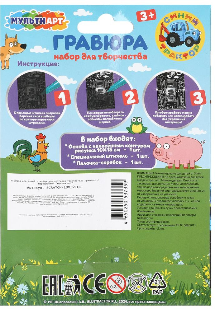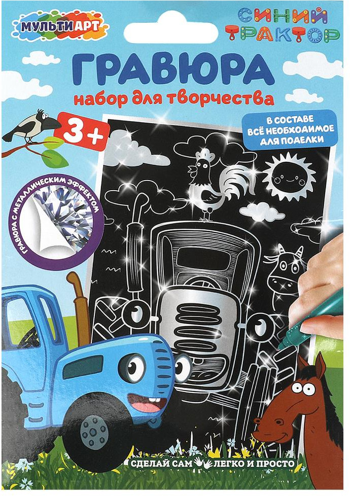 💳 Оплатить за товар можно при получении 🇰🇿 Есть бесплатная доставка по Казахстану 🎁 Копите бонусы с каждой покупки Набор для творчества — гравюра «Синий Трактор» ТМ «Мульти Арт» — отличный подарок для ребёнка, который будет способствовать развитию его творческих способностей: |