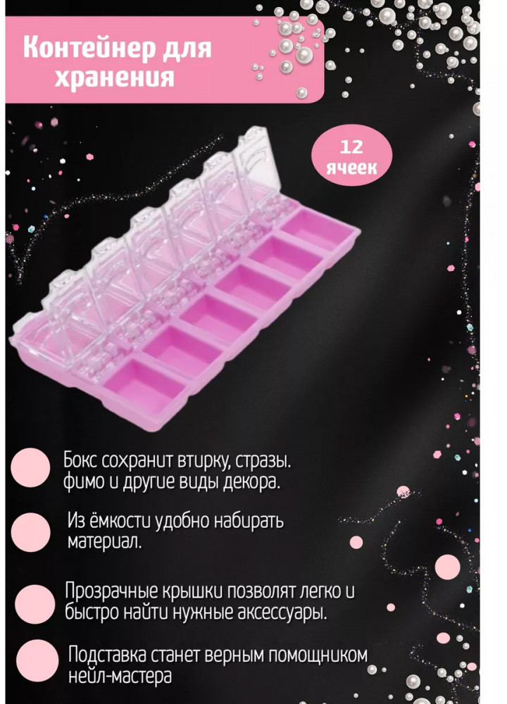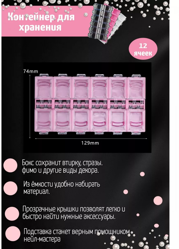 💳 Оплатить за товар можно при получении 🇰🇿 Есть бесплатная доставка по Казахстану от 1 дня 🎁 Копите бонусы с каждой покупки Этот удобный органайзер в стиле коробочки поможет вам организовать и хранить все драгоценные мелочи в одном месте. Его компактный размер и прозрачный пластик делают его идеальным для хранения различных предметов, будь то яркие стразы, блестящий бисер или другие ценные аксессуары. |