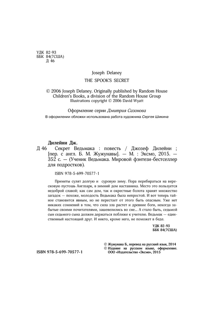 Секрет ВедьмакаВ данный момент этот товар отсутствует в продаже. Возможно, у нас найдется аналогичный или похожий товар здесь. Серия: Ученик Ведьмака Приметы сулят долгую и суровую зиму. Пора перебираться на вересковую пустошь Англзарк, в зимний дом наставника. Место это пользуется недоброй славой; как сам дом, так и окрестные болота хранят множество загадок — похоже, молодость Ведьмака была не простой. И вот теперь тайное становится явным, но не перестает от этого быть опасным. Уже нет никаких сомнений в том, что сила зла растет и древние боги, некогда забытые своими почитателями, зашевелились во сне… А стало быть, седьмой сын седьмого сына должен держаться поближе к учителю. Ведьмак — единственный настоящий друг. И никто, кроме него, не поможет в беде. |