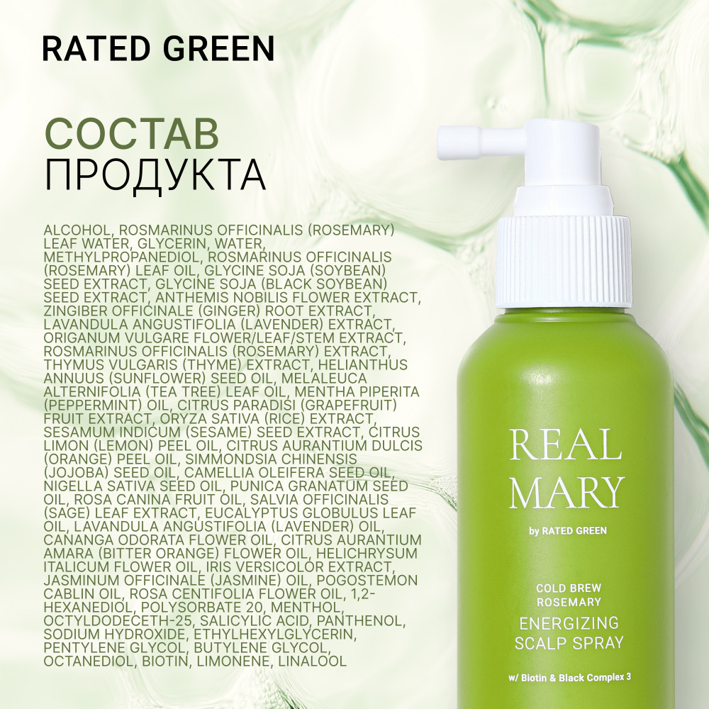 RATED GREEN Cпрей для кожи головы регенерирующий с соком розмарина «Real Mary»