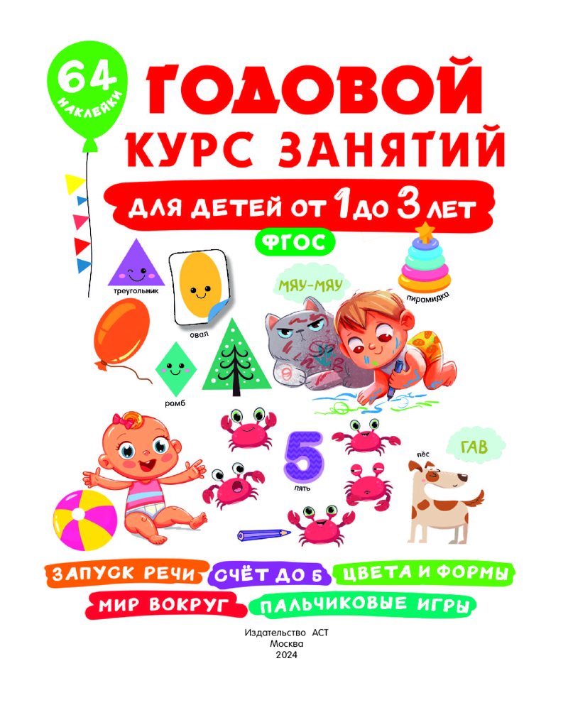 Годовой курс занятий для детей от 1 до 3 лет. 64 наклейкиВалентина Геннадьевна Дмитриева +40