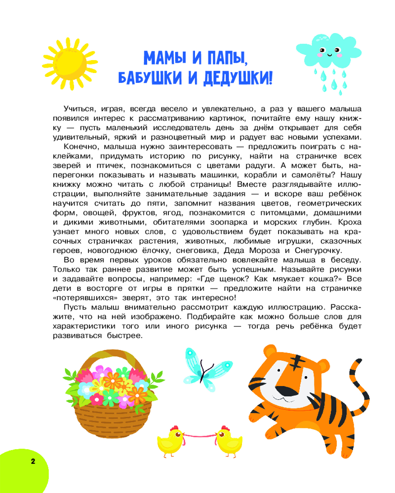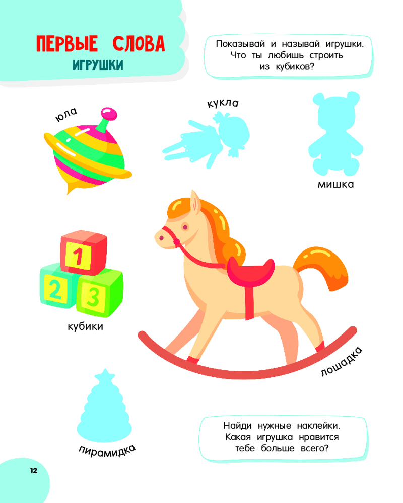 💳 Оплатить за товар можно при получении 🇰🇿 Есть бесплатная доставка по Казахстану от 1 дня 🎁 Копите бонусы с каждой покупки Серия: Годовой курс занятий с наклейками «Годовой курс занятий для детей от 1 до 3 лет. 64 наклейки» — это развивающее пособие для запуска речи, развития внимания, памяти, мелкой моторики, координации движений и логического мышления. Все необходимое для развития и обучения ребенка от года до трёх лет собрано в этой книге: кроха сделает первые шаги в познании окружающего мира, будет понимать обращенную к нему речь, с удовольствием рассматривать на картинках домашних и диких животных, потренирует пальчики, сможет узнавать и называть цвета и геометрические формы, освоит счёт до пяти, познакомится с потешками, пестушками и сказками, выучит 300 новых слов и научится строить фразы. Это идеальная книга-обучалка для самых маленьких: 64 красочные наклейки, много интересных игр и заданий, цветные картинки — и ни одной скучной страницы! |