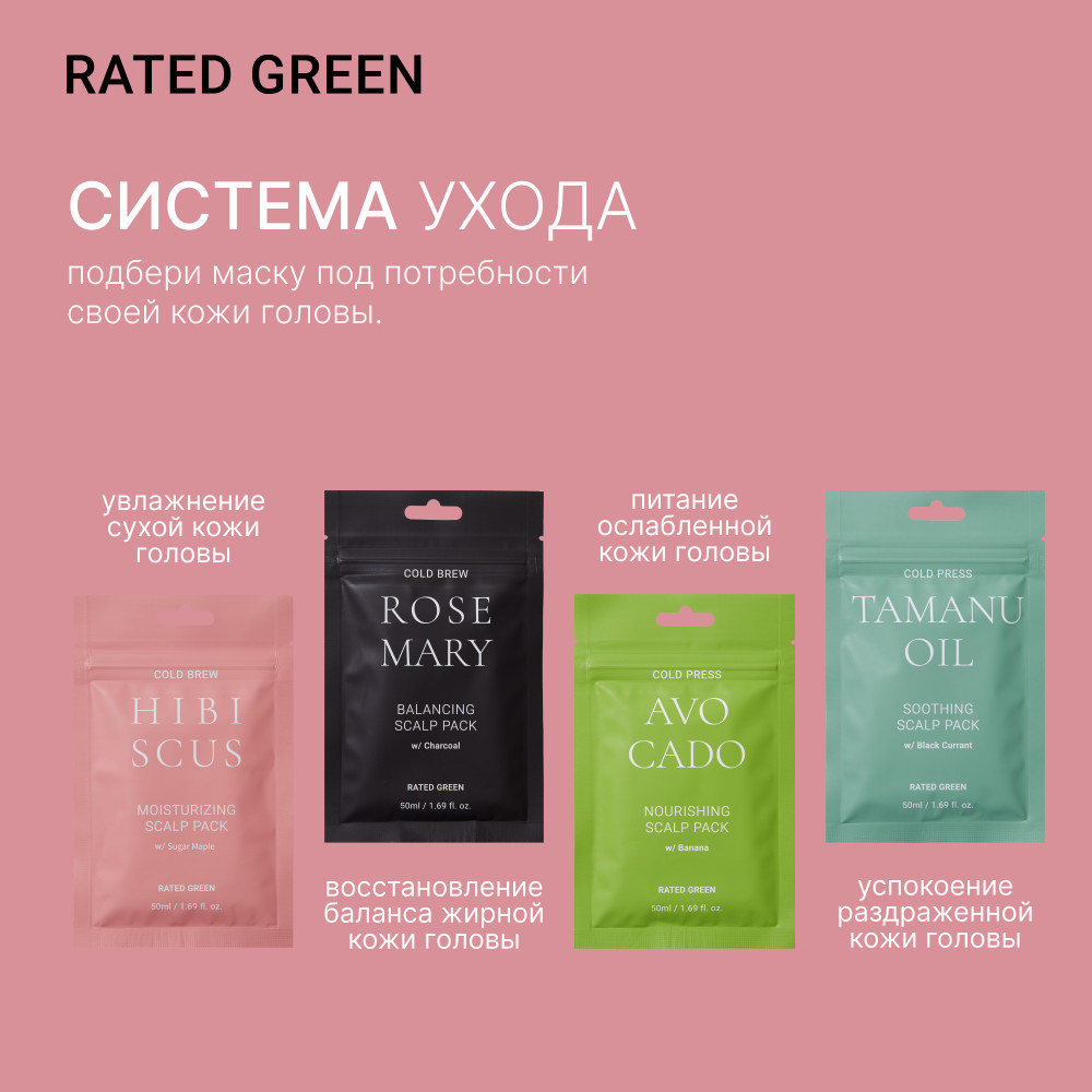 RATED GREEN Маска для кожи головы увлажняющая с соком гибискуса «Cold Brew Hibiscus»