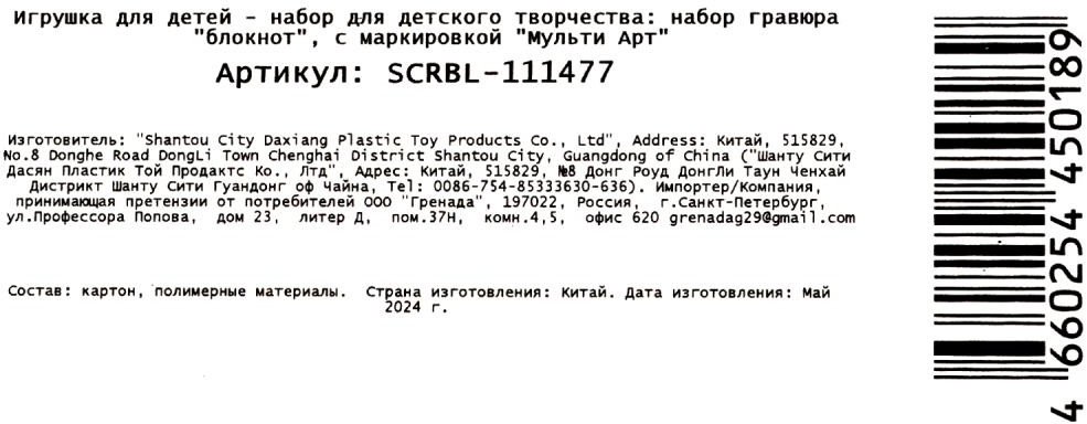 С помощью данного набора юный художник сможет создать 8 эффектных картин на чёрном фоне. Контур рисунка уже нанесён на основу, остаётся только процарапать изображение специальным штихелем. Можно не повторять каждую черточку, главное — соблюдать направление штриха! Готовая поделка станет отличным вариантом для подарка близким или для украшения интерьера комнаты.