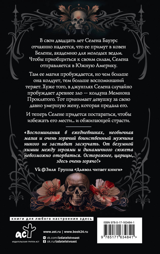 💳 Оплатить за товар можно при получении 🇰🇿 Есть бесплатная доставка по Казахстану от 1 дня 🎁 Копите бонусы с каждой покупки Серия: Миры Лоры Талассы. Околдованная В свои двадцать лет Селена Бауэрс отчаянно надеется, что ее примут в ковен Белены, академию для молодых ведьм. Чтобы приобщиться к своим силам, Селена отправляется в Южную Америку. Там ее магия пробуждается, но чем больше она колдует, тем больше воспоминаний теряет. Хуже того, в джунглях Селена случайно пробуждает древнее зло — колдуна Мемнона Проклятого. Тот принимает девушку за свою давно умершую жену, которая предала его. И теперь Селене придется постараться, чтобы избежать его мести... и обжигающей страсти. |