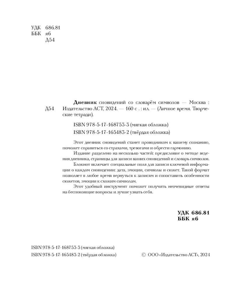 💳 Оплатить за товар можно при получении 🇰🇿 Есть бесплатная доставка по Казахстану от 1 дня 🎁 Копите бонусы с каждой покупки Серия: Личное время. Творческие тетради (твёрдая обложка) Этот дневник сновидений станет проводником к вашему сознанию, поможет справиться со страхами, тревогами и обрести гармонию. |