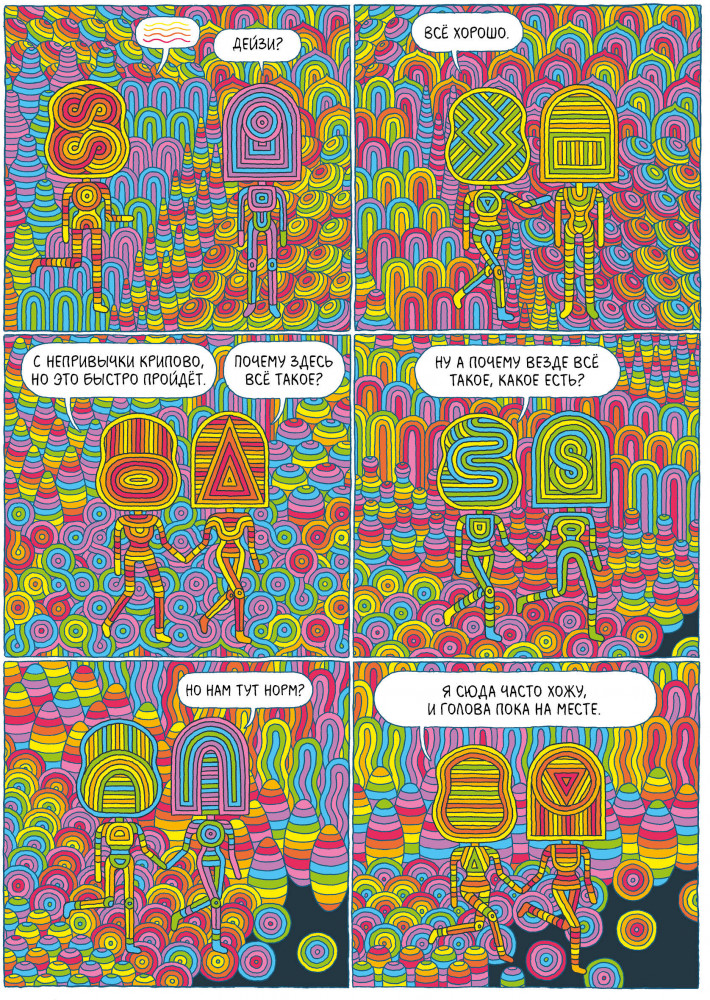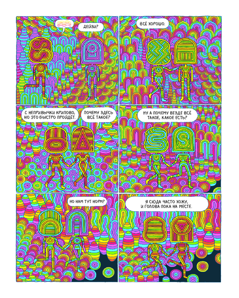 💳 Оплатить за товар можно при получении 🇰🇿 Есть бесплатная доставка по Казахстану от 1 дня 🎁 Копите бонусы с каждой покупки Серия: Комильфо. С миру по книжке Дейзи только что переехала в новый город и чувствует себя чужой среди одноклассников. Но в подвале её дома таится нечто немыслимое, позволяющее забыть обо всём за пределами стен: стиральная машина, служащая порталом в яркий психоделический мир, лишённый привычных нам законов физики и логики. Фрактальные материи и внепространственные ключи меняют здесь всё сущее до состояния полной неузнаваемости. |