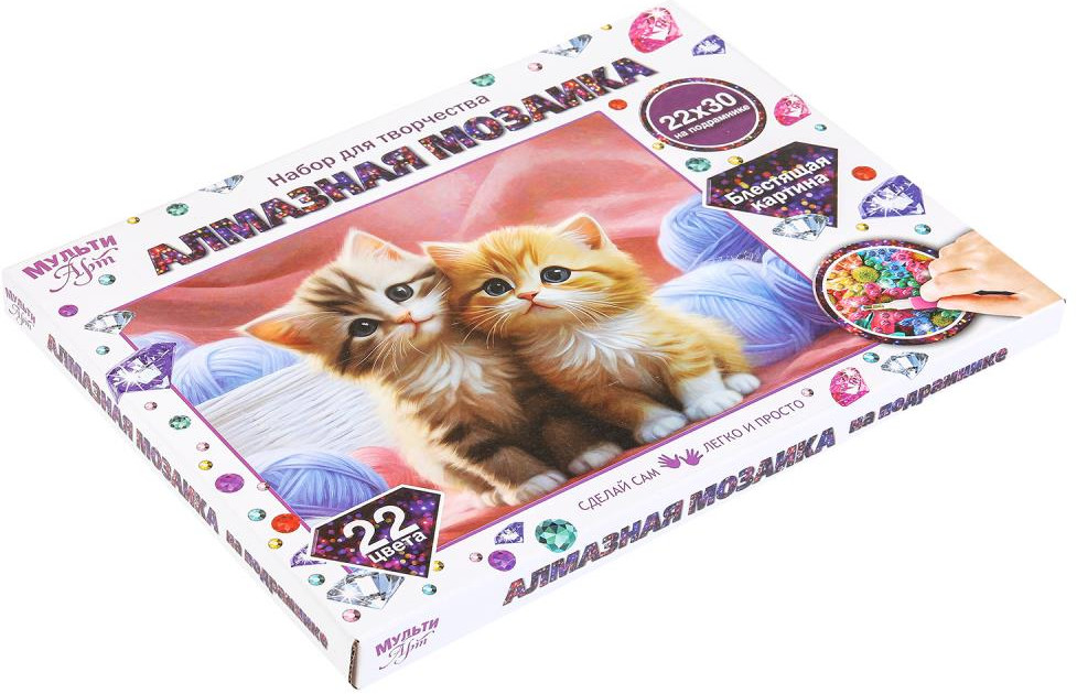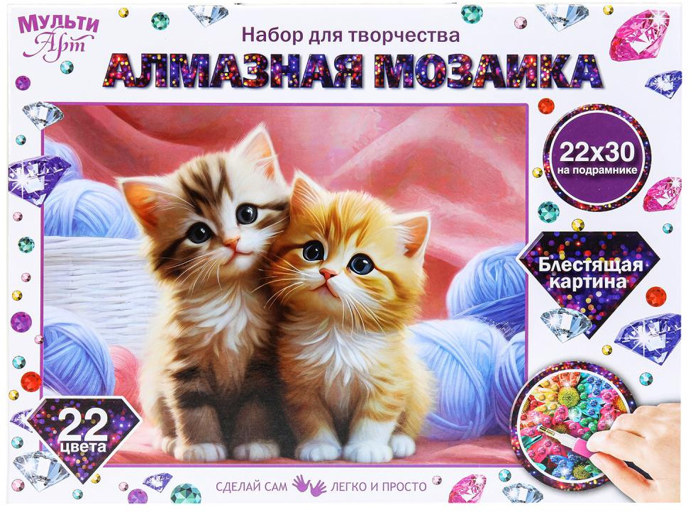 Набор для детского творчества — алмазная мозаика «Котики» ТМ «Мульти Арт» — отличный подарок для ребёнка, который будет способствовать развитию его творческих способностей.