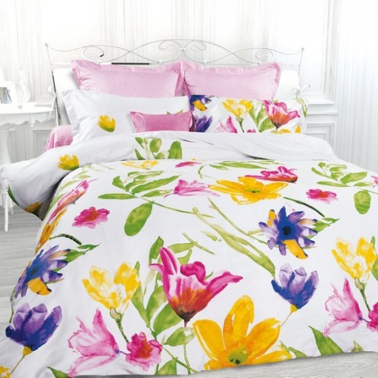 Акварельная печать на сатине производится с помощью инновационного печатного оборудования. Печатные рамы перфорируются специальным образом, и посредством сложного процесса в несколько тончайших слоев краска наносится на ткань. Это действо очень похоже на реальное рисование картин акварельными красками. Подобная печать возможна только на трех фабриках в мире, так как требует специального оборудования, профессионального персонала и, что немаловажно, очень качественной ткани – основы.