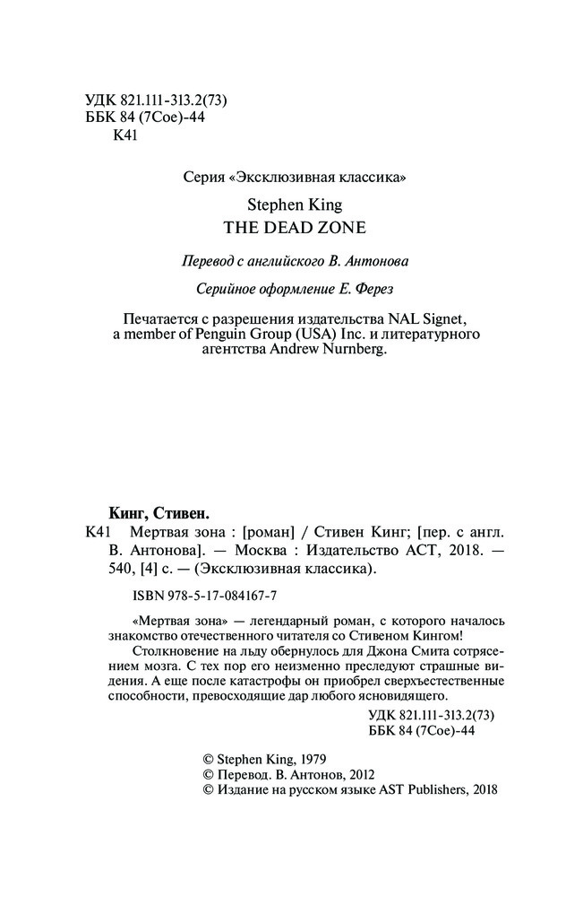 Мертвая зона+87 читаемый шрифт плотные страницы качественный переплёт увлекательный сюжет
