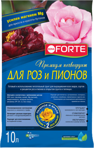 Bona Forte Грунт для роз и пионов «Премиум почвогрунт»В данный момент этот товар отсутствует в продаже. Возможно, у нас найдется аналогичный или похожий товар здесь. Готовый к использованию питательный грунт для выращивания всех видов, сортов и расцветок роз в открытом грунте и теплицах. Грунт для роз и пионов отлично подходит для всех плетистых, кустарниковых, каскадных, штамбовых, клумбовых, миниатюрных и других видов роз. Рекомендован для выращивания древовидных и травянистых пионов. Грунт обогащен комплексным удобрением Bona Forte и содержит все питательные вещества и стимуляторы роста, входящие в используемый тип удобрения. |