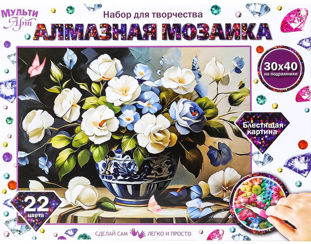 Набор для детского творчества — алмазная мозаика «Белые цветы» ТМ «Мульти Арт» — отличный подарок для ребёнка, который будет способствовать развитию его творческих способностей.