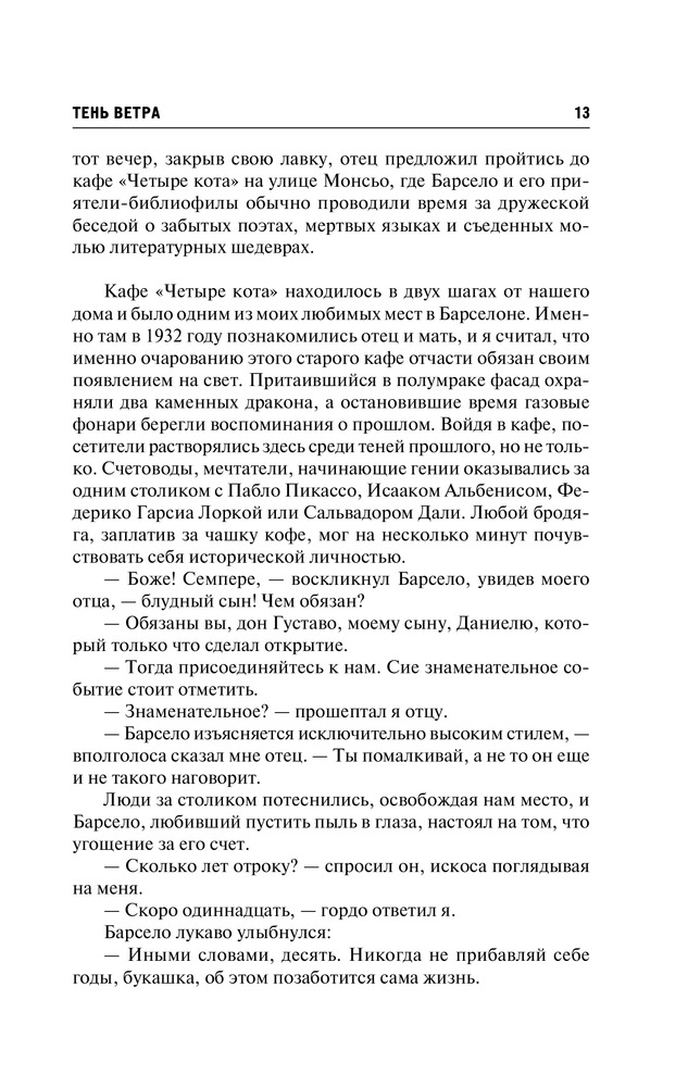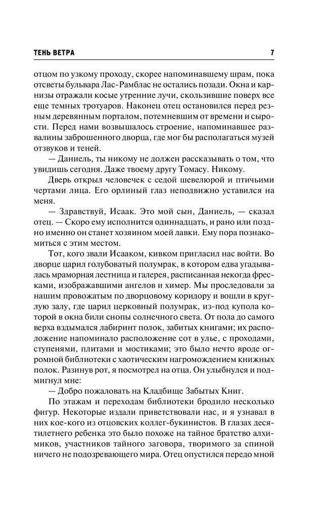 "Тень ветра" - прекрасная книга испанского автора Карлоса Руиса Сафона. 📖 Это произведение относится к циклу "Кладбище Забытых Книг". Сюда входят также такие книги как "Игра ангела", "Узник неба" и "Лабиринт призраков". Великолепная книга действие в которой разворачивается в прекрасной Барселоне. Очень захватывающий и интригующий сюжет. Здесь вплетена история в историю, которую стремится разгадать молодой человек, сын владельца букинистической лавки. А нужно ли знать разгадку и чужую тайну? К каким последствиям это уже однажды привело в прошлом и как может отразится на настоящем? Всё это интересно и увлекательно описывается в этой книге. Здесь замечательно показана как внешность, так и характер персонажей, причём автор передаёт их характер не только с помощью описания их внешнего облика, но и с помощью их речи, манеры говорить, двигаться и общаться с другими людьми. И ты уже видишь их в живую и знаком с каждым лично. Ты переносишься в детство героев, где показываются условия их жизни, их родители, и влияние тех или иных обстоятельств на формирование их личности и дальнейшей жизни в целом. Здесь показана дружба, любовь, взаимоотношения людей, их личная драма, переживания, надежды, боль, безысходность, страх и вера. В общем, стоящая книга❤️