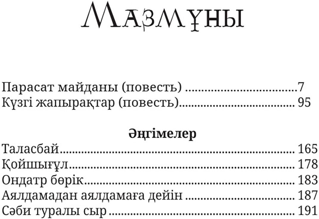 Серия: Мектеп кітапханасы Парасат майданы — жазушының адамзатқа бағытталған жанайқайы, өмірдің тылсым сырына үңілген жанның өзгелерге айтар өсиеті. |