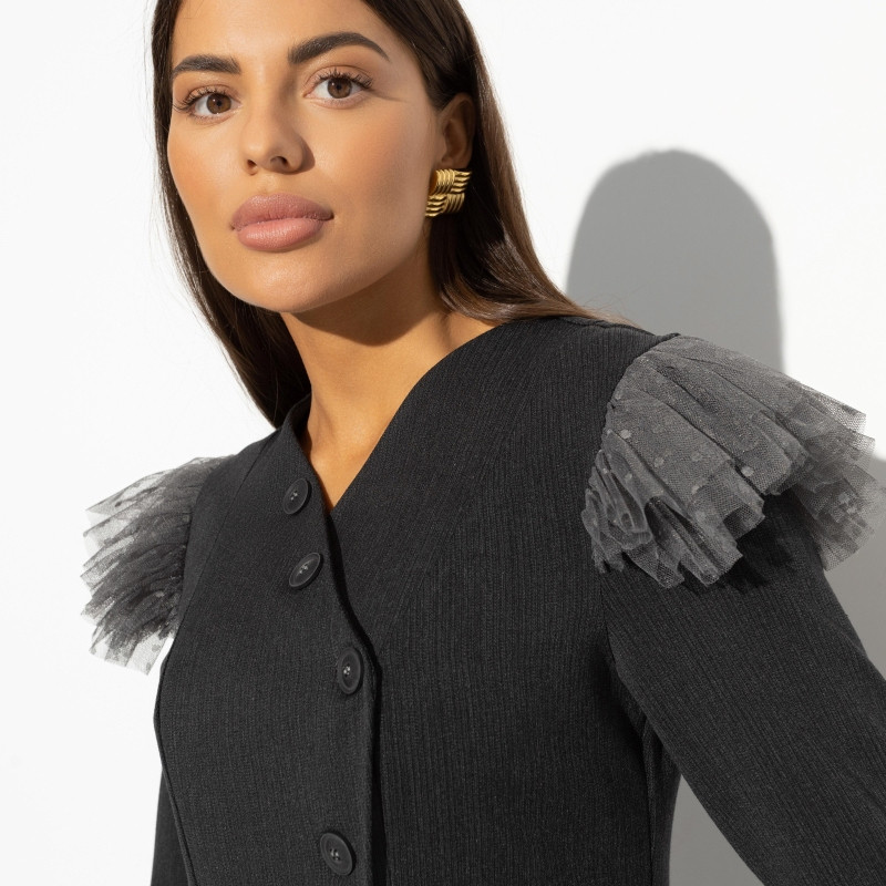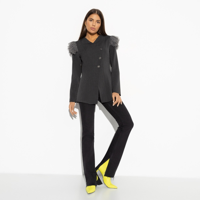 Charutti Жакет женский с объемным декором и ассиметричной линией застёжки Модная провокация