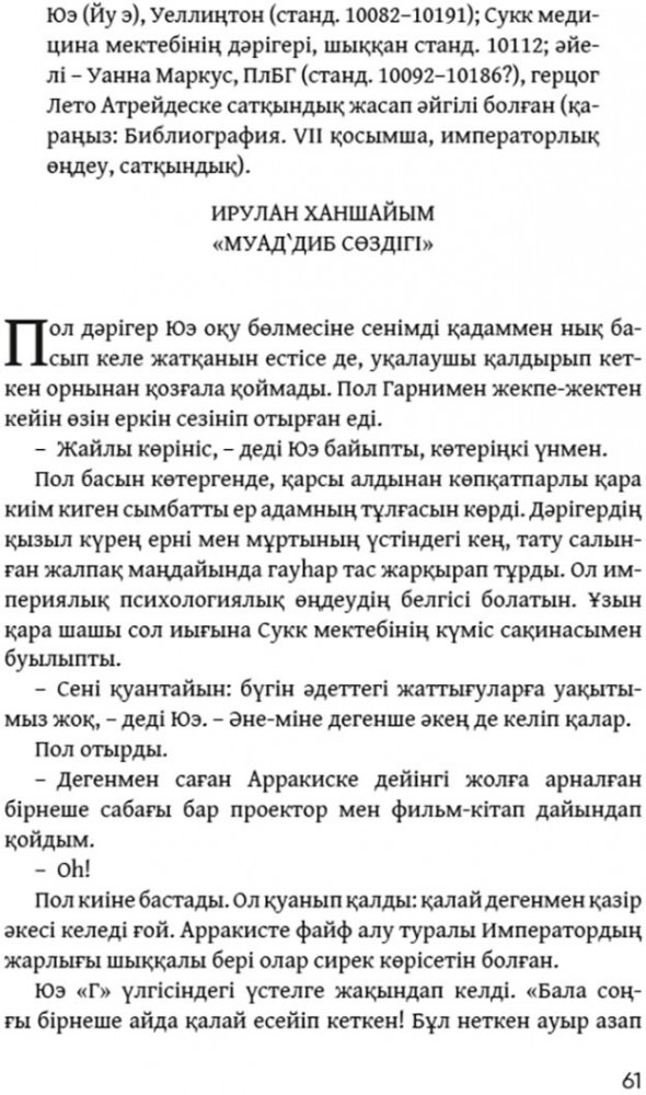 💳 Оплатить за товар можно при получении 🇰🇿 Есть бесплатная доставка по Казахстану от 1 дня 🎁 Копите бонусы с каждой покупки Серия: Qazaqsha 100 bestseller Америкалық фантаст-жазушы Фрэнк Герберт «Құмбел хроникаларымен», әсіресе оның алғашқы романы «Құмбел» циклімен әйгілі болған. ХХ ғасырдың 60-жылдары алдымен АҚШ-та, одан кейін бүкіл әлемде дүмпу тудырған фантастикалық роман адамзат дамуының біздің заманымыздан да бес мың жыл ілгері болашағын болжап бергендей. Роман оқиғасына адамзаттың эволюциялық даму барысында аман қалуы, экология проблемалары, діндердің, саясат пен биліктің өзара әрекеттестігі сияқты маңызды мәселелер арқау болған. Мұндай көпқатпарлы, күрделі романды зерттеп, жазып шығуға автор өмірінің 6 жылын сарп еткен. Шын мәнісінде, ғылыми фантастиканың жауһары саналатын бұл роман көптеген талантты жазушылардың осы жанрдағы шығармашылық ізденістеріне игілікті ықпалын тигізді. «Құмбел» (Dune) романы қазақ тіліне тұңғыш рет аударылып отыр. |
