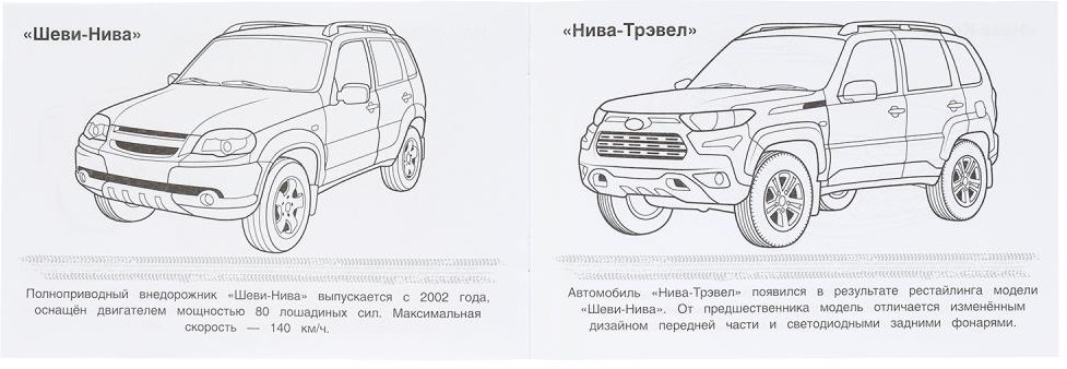 Интересная, познавательная раскраска небольшого размера. К каждому автомобилю идёт описание.