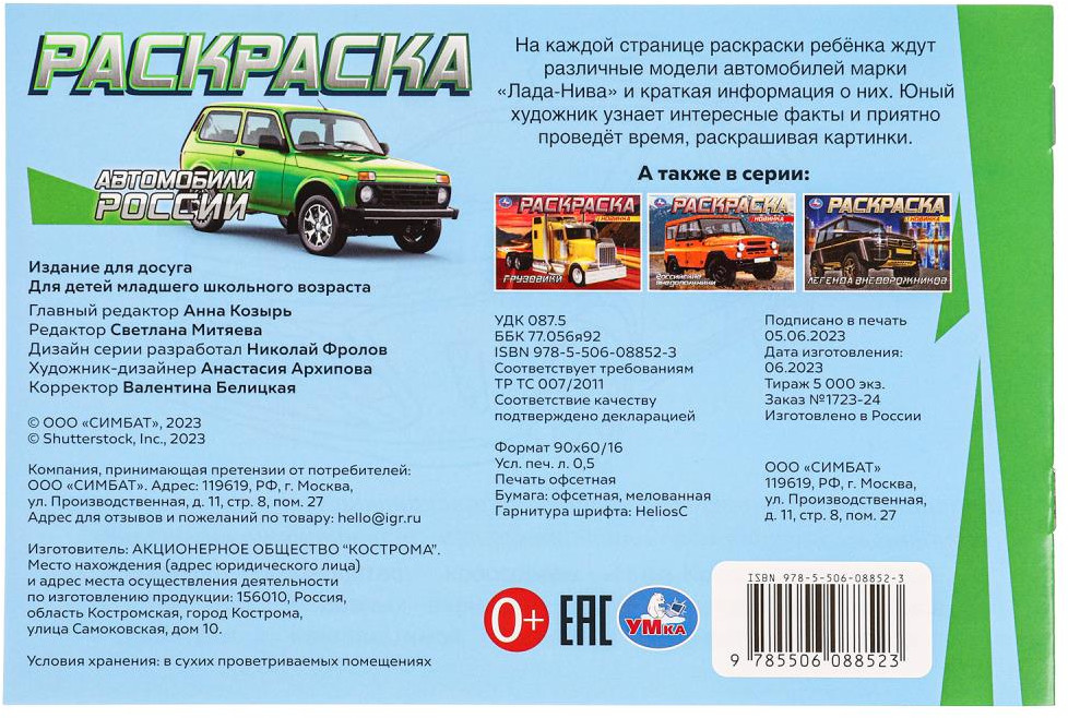 УМка Раскраска «Автомобили России»-35% +6 цена карандаши размер описания познавательная