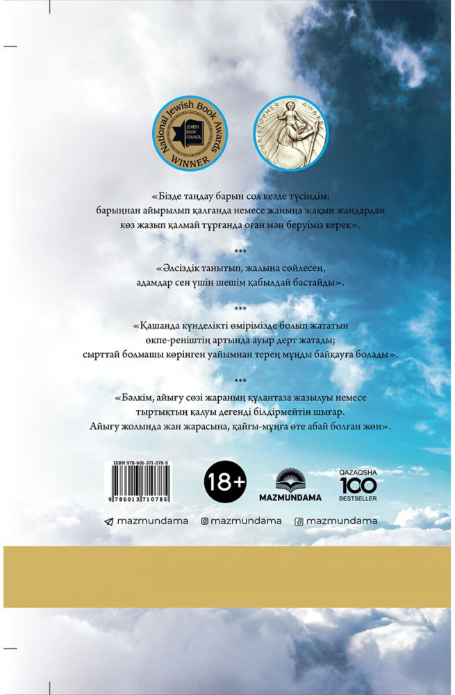 💳 Оплатить за товар можно при получении 🇰🇿 Есть бесплатная доставка по Казахстану от 1 дня 🎁 Копите бонусы с каждой покупки Серия: Qazaqsha 100 bestseller ТАҢДАУ! Бұл кітапты оқып шыққан адам осы сөздің БОСТАНДЫҚ сөзімен тамырлас екенін айқын аңғарады. Тән бостандығы, жан бостандығы! Рух бостандығы! Кітап авторы Эдит Ева Эгер дәл осы бостандыққа жетсем деп күрескен әйел. Жоқ, ол өзгелермен емес, өз сана-сезімімен, жан жарасымен, ішкі азабымен арпалысты. 16 жасында ата-анасымен, әпкесімен бірге Аушвицтегі өлім лагеріне айдалып, тозақ отынан ішкі жан дүниесінің мықтылығынан ғана аман қалған биші қыз соғыс аяқталып, бейбіт өмірге қайта оралғаннан кейін де өзін тар құрсауда жүргендей сезінген. Санасында сартап болып сіңіп қалған сұм соғыстың ауыр зардабы ішкі әлемін запырандай улап, өз-өзіне келе алмаған. Қажырлы еңбек пен өмірге деген шексіз құштарлықтың арқасында, өзінің ішкі әлемін зерттеу арқылы өзгелердің де жан жарасын емдейтін атақты психолог атанды. Тағдырдың қысылтаяң сәтінде кімде де болса ТАҢДАУ болатынын, тек саналы ақылмен ғана әрекет етсе ғана жеңіске жететінін өз басынан өткен оқиғалар арқылы баяндайды. |