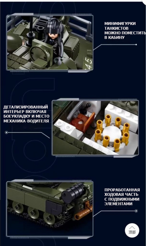 💳 Оплатить за товар можно при получении 🇰🇿 Есть бесплатная доставка по Казахстану от 1 дня 🎁 Копите бонусы с каждой покупки Конструктор Sluban танк Т-80БВМ две модели в одном. Сборная модель основного боевого танка Т-80. На выбор Вы можете собрать 2 модификации: Т-80БВМ и Т-80У. Масштаб модели 1/35. Конструктор танка включает 798 деталей и 2 минифигурки. В длину ОБТ 28.7 см. |