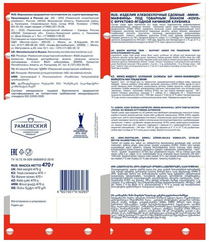 Kovis Мини-маффины с фруктово-ягодной начинкой «Клубника»-15% +54