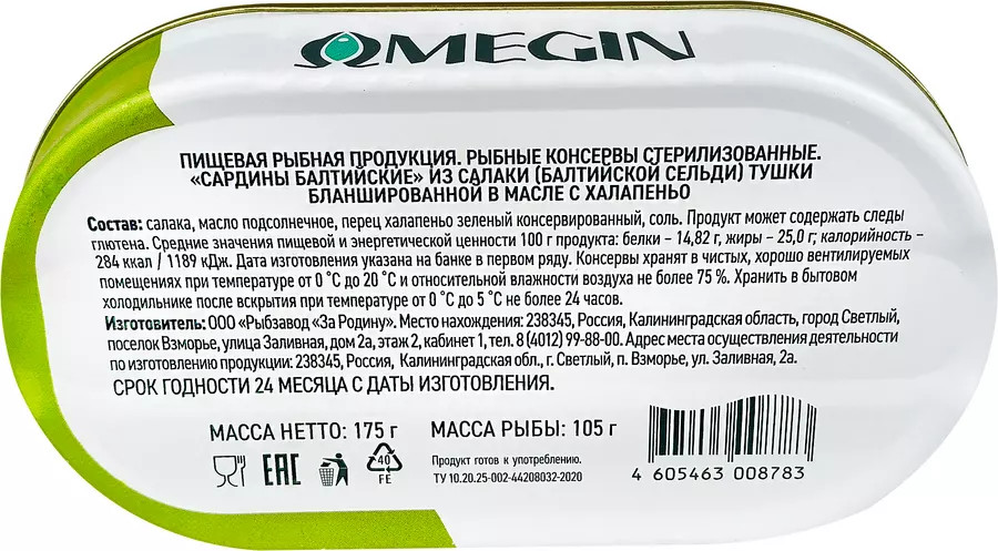 За Родину Сардины балтийские из салаки бланшированной в масле с халапеньо+39 вкус пикантность цена