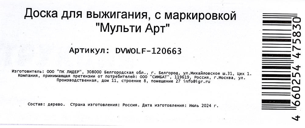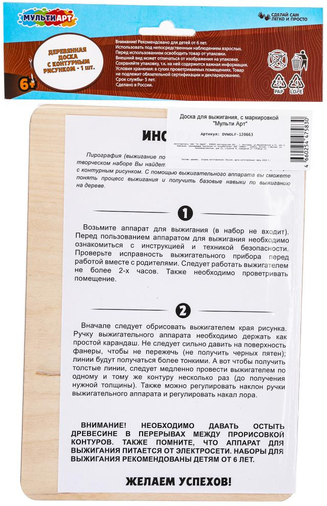 Multi Art Доска для выжигания «Волк»
