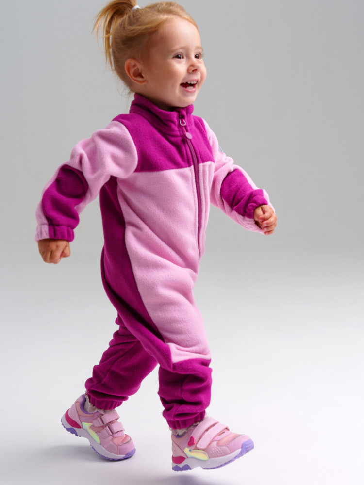 Комбинезон детский из флиса для девочки — для повседневной одежды второго слоя в холодное время года. Плотность флиса 260 г/м2. Воротник-стойка. Манжеты с эластичной окантовкой. Клапан для защиты подбородка при застегивании молнии. Комфорт посадки обеспечен за счет конструктивной резинки на поясе сзади. Флисовая поддева идеально подходит под зимний мембранный костюм или комбинезон, в качестве второго слоя в трехслойной концепции одежды для зимы. Основная функция поддевы из флиса — удерживать тепло и передавать пар от первого слоя — термобелья, оставаясь сухим.