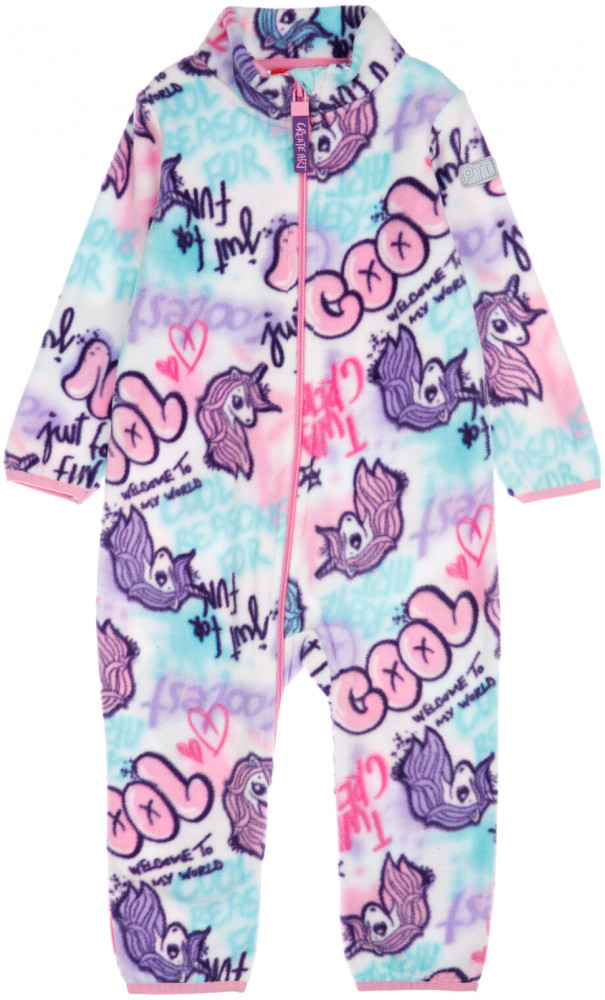 Комбинезон детский из флиса для девочки — для повседневной одежды второго слоя в холодное время года. Плотность флиса 260 г/м2. Воротник-стойка. Манжеты с эластичной окантовкой. Клапан для защиты подбородка при застегивании молнии. Комфорт посадки обеспечен за счет конструктивной резинки на поясе сзади. Флисовая поддева идеально подходит под зимний мембранный костюм или комбинезон, в качестве второго слоя в трехслойной концепции одежды для зимы. Основная функция поддевы из флиса — удерживать тепло и передавать пар от первого слоя — термобелья, оставаясь сухим.
