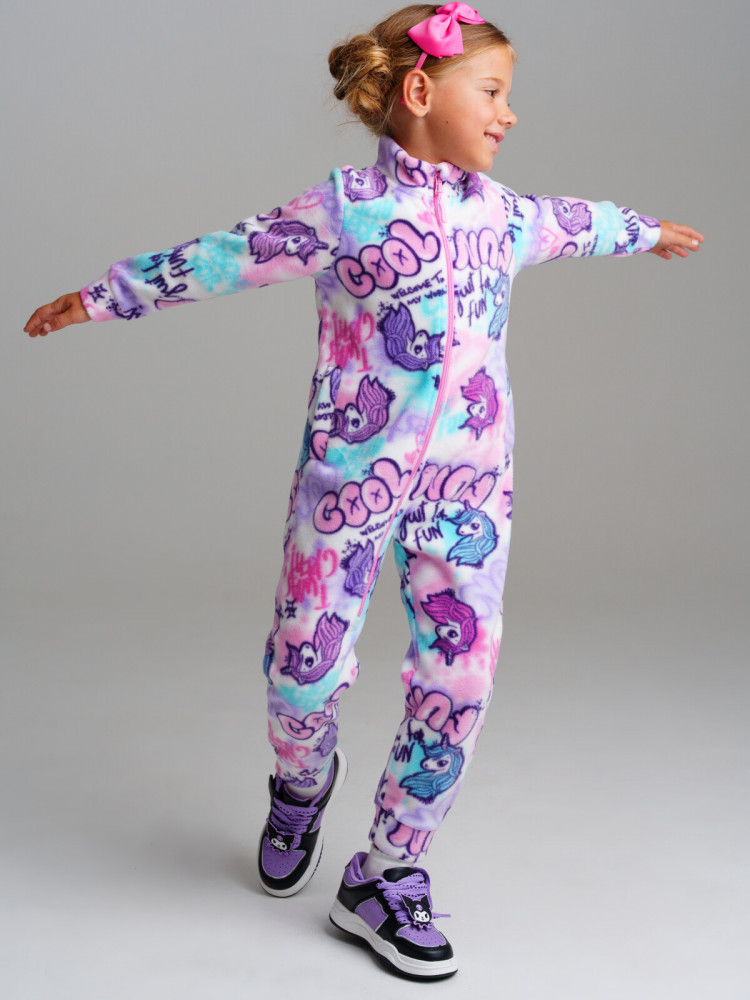 Комбинезон детский из флиса для девочки — для повседневной одежды второго слоя в холодное время года. Плотность флиса 260 г/м2. Воротник-стойка. Манжеты с эластичной окантовкой. Клапан для защиты подбородка при застегивании молнии. Комфорт посадки обеспечен за счет конструктивной резинки на поясе сзади. Флисовая поддева идеально подходит под зимний мембранный костюм или комбинезон, в качестве второго слоя в трехслойной концепции одежды для зимы. Основная функция поддевы из флиса — удерживать тепло и передавать пар от первого слоя — термобелья, оставаясь сухим.