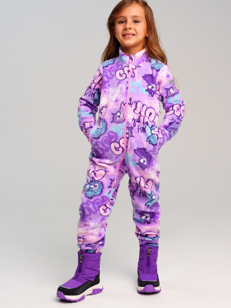 Комбинезон детский из флиса для девочки — для повседневной одежды второго слоя в холодное время года. Плотность флиса 260 г/м2. Воротник-стойка. Манжеты с эластичной окантовкой. Клапан для защиты подбородка при застегивании молнии. Комфорт посадки обеспечен за счет конструктивной резинки на поясе сзади. Флисовая поддева идеально подходит под зимний мембранный костюм или комбинезон, в качестве второго слоя в трехслойной концепции одежды для зимы. Основная функция поддевы из флиса — удерживать тепло и передавать пар от первого слоя — термобелья, оставаясь сухим.