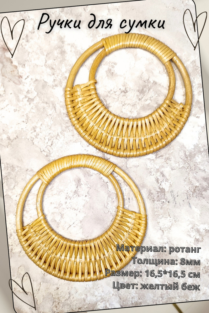 Плетеные ручки для сумок — это стильный выбор для тех, кто хочет добавить изысканности и функциональности своим сумкам. Эти ручки изготовлены из ротанга, что делает их легкими, прочными и приятными на ощупь. Эти ручки для сумок станут идеальным дополнением к любому стилю и цвету вашей сумки. Сделанные с использованием высококачественных материалов, плетеные ручки для сумок обеспечивают долговечность и удобство при использовании. Не только они привлекательны внешне, но и обладают характеристиками, которые делают их лучшим выбором для заботливых владельцев сумок. Выберите плетеные ручки для сумок и добавьте свой индивидуальный стиль к любой сумке, которую вы любите и используете в повседневной жизни. Подходят как для вязаных изделий так и для кожаных. Ручки из ротанга прикрепляются к готовому изделию путем ввязывания в изделие. Подходят к следующим видам сумок: кроссбоди, шоппер, магнолия, авоська. Данные ручки также можно использовать как фурнитуру для плетения в технике макраме. Плетеные ручки для сумок можно совмещать в изделии с длинным плечевым ремнем.
