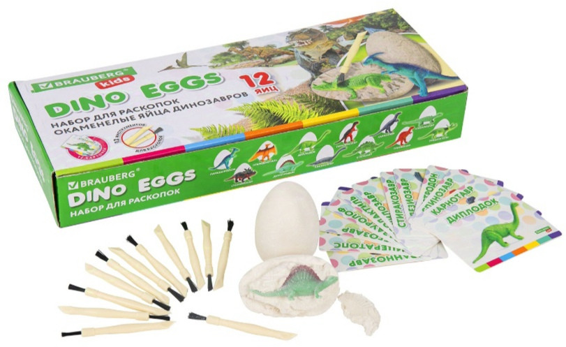 💳 Оплатить за товар можно при получении 🇰🇿 Есть бесплатная доставка по Казахстану от 1 дня 🎁 Копите бонусы с каждой покупки Серия: Kids Набор для раскопок динозавров Brauberg Kids — уникальная игрушка, которая не только развлечет вашего ребенка, но и подарит ему массу полезных знаний. В набор входит 12 гипсовых яиц с динозаврами, каждое из которых содержит настоящую миниатюру древней рептилии. Детские игрушки из этого набора позволяют малышу почувствовать себя настоящим палеонтологом, исследуя мир динозавров. Раскопки для мальчиков и девочек подойдут как отличный подарок на день рождения, ведь в комплекте все необходимое для увлекательного процесса раскопок: 12 инструментов и красочные двусторонние карточки с подробной информацией о каждом динозавре. |