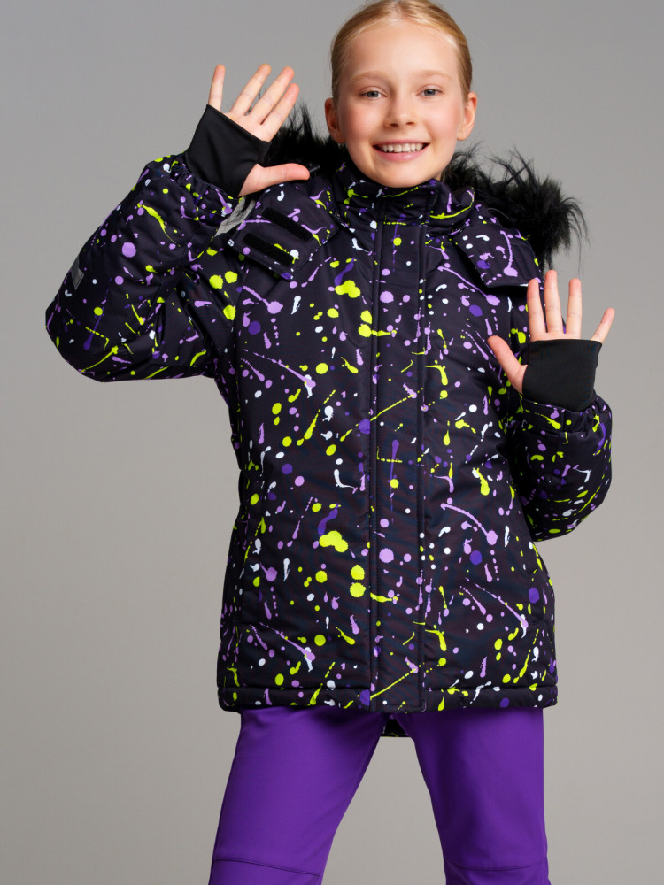 Зимняя куртка для девочки подростка. Температурный режим до −25С.Мембрана 5000×5000, подкладка — флис и утеплитель 200 г/м. Боковые карманы на липучке, съемный капюшон с адаптацией по ширине резинкой, внешняя ветрозащитная планка на липучках, эргономичные рукава. Внутренние лямки для снятия в помещении, внутренний карман, снегозащитная юбка с резинкой Snow stopper. Утепленная горнолыжная куртка — идеальный выбор для активного отдыха на свежем воздухе в зимний период. Инновационный утеплитель и флисовая подкладка сохраняют тепло морозную погоду. Мембранный материал делает этот яркий и модный комбинезон непромокаемым: мембрана не пропускает влагу снаружи, но выводит её изнутри, что крайне важно во время подвижных игр и занятий спортом. Легкая, теплая и удобная, куртка идеально подходит для спорта, лыж, сноуборда и игр на свежем воздухе в холодный период года: зима, поздняя осень и ранняя весна.