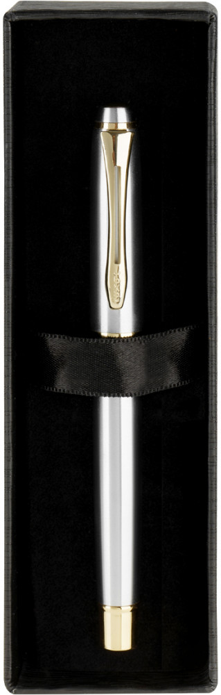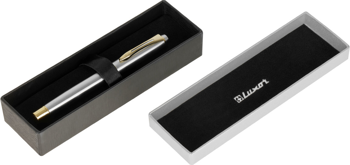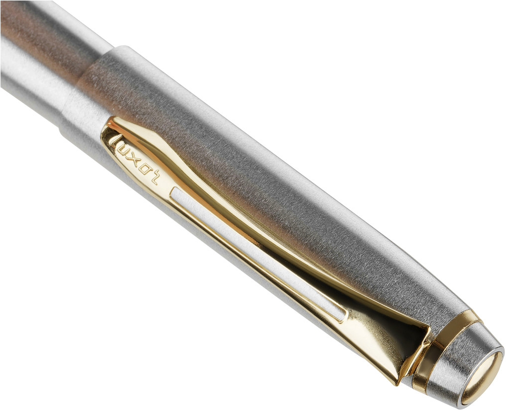 Перьевая подарочная ручка Luxor Trident — роскошь и стиль в деталях. Модель выполнена из прочного и качественного покрытия сплава на основе меди (латунь). Цвет корпуса — серебристый, цвет декоративных элементов — золото. Диаметр пишущего узла составляет 0,8 мм. Ручка Trident подходит для комфортного быстрого письма. Клип из нержавеющей стали помогает фиксировать её на ежедневниках, блокнотах и карманах одежды. |