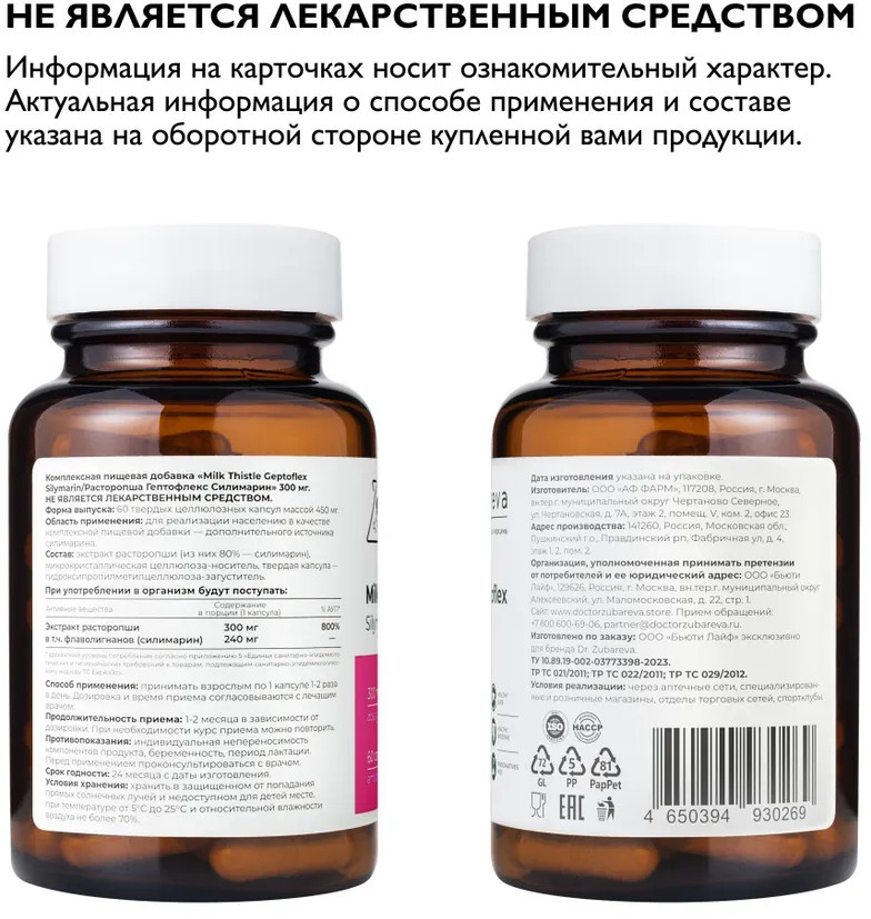 Рекомендации по применению: Наталья Зубарева рекомендует принимать по 1 капсуле Расторопша Geptoflex в день, чтобы эти расторопша таблетки обеспечили качественную детоксикацию печени и максимум пользы для всего организма, как и другие БАДы и витамины в линейке бренда Dr.Zubareva.