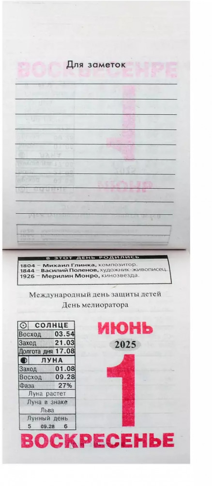 Календарь отрывной на 2025 год «Травник»В данный момент этот товар отсутствует в продаже. Возможно, у нас найдется аналогичный или похожий товар здесь. Отрывной настенный календарь на все 365 дней 2025 года с указанием государственных и профессиональных праздников, а также перечислением именинников. Целебная сила растений известна человечеству уже много тысячелетий. Малина и медуница, петрушка и пастушья сумка, осина и клевер — на каждой странице календаря вас ждут советы по применению полезных растений в домашних условиях. Дополнительно читатель найдёт лунный календарь здоровья на каждый месяц. Как и в любом отрывном календаре, на каждый день года указаны моменты восхода и захода Солнца и Луны, фазы Луны, долгота дня для Москвы, а также данные о прохождении Луны по знакам Зодиака. |