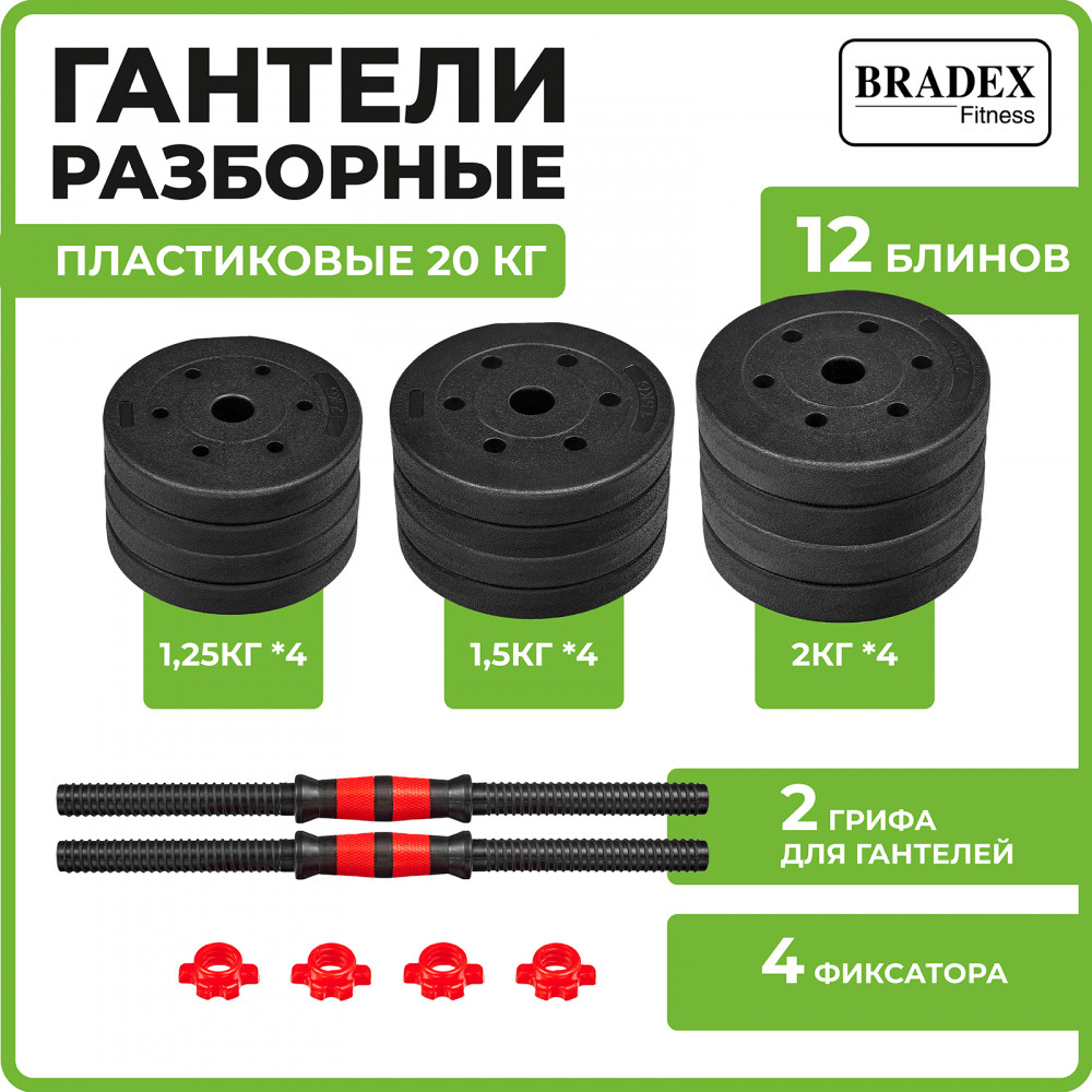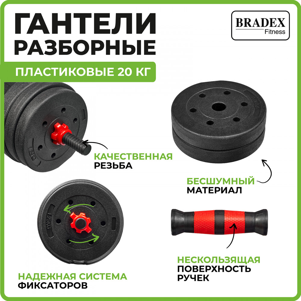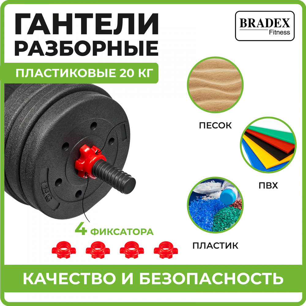 Пластиковые гантели весом 20 кг — идеальное решение для домашней тренировки и укрепления мышц. Гантели прекрасно подойдут как для начинающих, так и для опытных спортсменов. Набор пластиковых гантелей состоит из дисков разного веса. Это позволяет легко настраивать нагрузку в зависимости от физических возможностей и целей тренировки. Вес можно увеличивать постепенно, улучшая свою физическую форму и развивая мышцы.