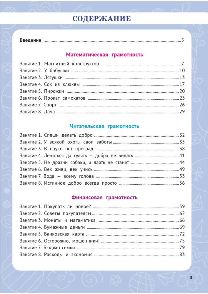 💳 Оплатить за товар можно при получении 🇰🇿 Есть бесплатная доставка по Казахстану от 1 дня 🎁 Копите бонусы с каждой покупки Серия: Функциональная грамотность. Тренажёр Учебное пособие предназначено для организации внеурочной деятельности обучающихся во 2-м классе и формирования у них основ функциональной грамотности. В книге представлены четыре раздела: «Математическая грамотность», «Читательская грамотность», «Финансовая грамотность» и «Естественно-научная грамотность». В пособие включены задания разных типов, которые носят практико-ориентированную направленность и учат обучающихся применять полученные знания в жизни, развивают внимание, логику, познавательный интерес, формируют умение обосновывать и отстаивать свою точку зрения. Пособие соответствует требованиям обновлённого ФГОС НОО и предназначено для учителей начальных классов, преподавателей центров дополнительного образования, второклассников и их родителей. |
