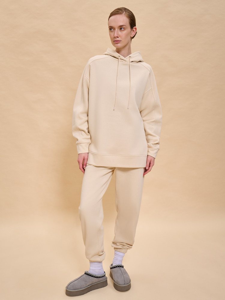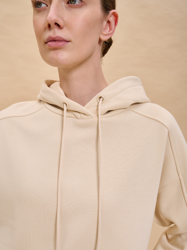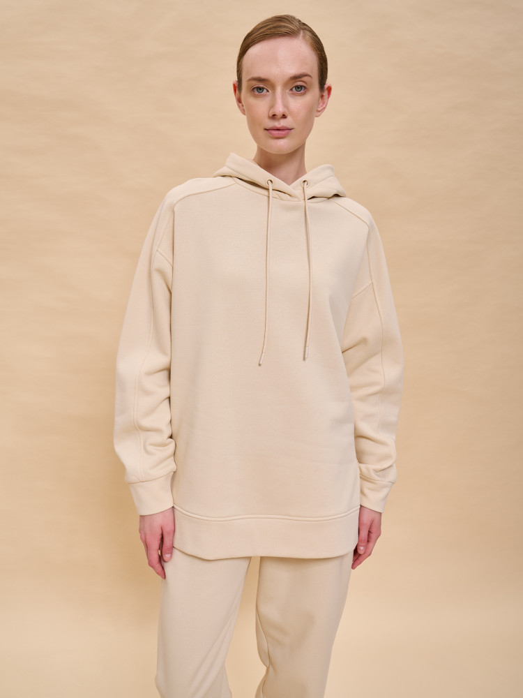 Худи с капюшоном выполнено из мягкого футера с начёсом — в составе ткани преобладает высококачественный хлопок, ткань дышит. Полиэстер помогает сохранить цвет и первозданный внешний вид надолго. Женское худи выполнено в в универсальных цветах, которые легко сочетать с любыми брюками, джинсами — можно создать много стильных образов. Толстовка лаконичного дизайна, без принтов. Однотонное оверсайз худи — базовый элемент повседневного женского гардероба. Худи с начесом можно носить круглый год.