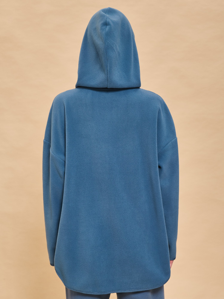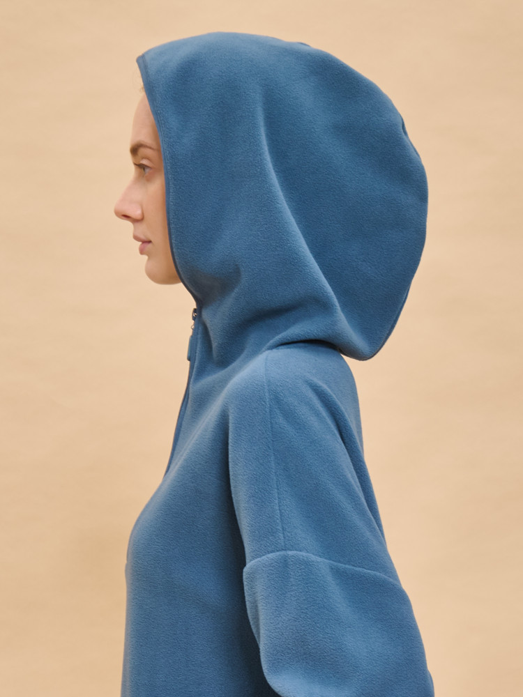 толстовка всем хороша,ткань мягкая ,как байка,цвет действительно джинс., дизайн интересный ,швы все ровные обверложены,замок в тон.