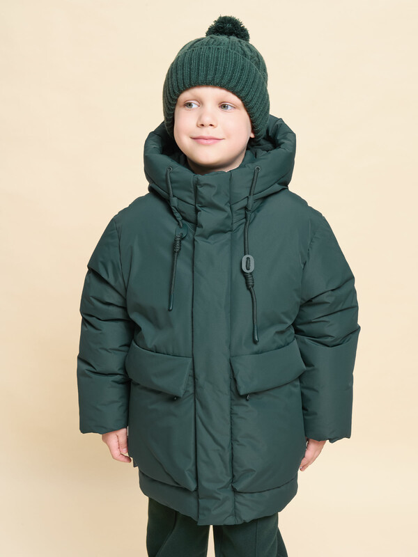 Куртка зимняя для мальчика. Модель прямого силуэта, объем — умеренный оверсайз. Куртка гладкая, без стёжки — суперактуальный тренд сезона. При этом утеплитель простёган внутри изделия — он равномерно распределён и надёжно зафиксирован. На внешнюю поверхность материала нанесена водоотталкивающая пропитка (DWR), она задерживает грязь и влагу снаружи — ребёнок не промокнет от снега, а комбинезон легко отстирается. Также есть дополнительная пропитка на внутренней стороне ткани — для более надёжной защиты от промокания. Капюшон с двумя швами, что обеспечивает анатомически правильную форму и комфортную посадку по голове. Легко одевается на шапку. Высокое забрало капюшона защищает шею и лицо от холода и ветра. Горло закрыто, шарф не нужен. Объём капюшона регулируется эластичным шнуром со стопперами. Центральная застёжка на пластиковую тракторную молнию, разъёмную с двух сторон — удобно садиться, пуллеры металлические, прочные. Сверху планка на велькро (липучках) — быстро застёгивается и расстёгивается. Куртка теплая — центральная молния с изнаночной стороны дополнительно закрыта ветрозащитной планкой. В рукавах внутренние манжеты из эластичной рибаны для защиты от холода и ветра. Рибана приятна на ощупь и при этом надолго сохраняет эластичность, не теряет форму. По переду объёмные накладные карманы с клапанами, закрываются на молнию. Внутренний карман на молнии для важных мелочей. В каждой куртке есть нейм-лейбл! Ребенок не потеряется и не потеряет куртку! В боковых швах и на спинке расположены светоотражающие элементы — безопасность в тёмное время суток. Модель без принта. Зимняя куртка с наполнителем из полиэстера — она тёплая, лёгкая, без проблем стирается, быстро сохнет, сохраняет отличную форму и цвет надолго. Мягкая флисовая подкладка добавляет дополнительную теплоту изделию во время холодов. В рукавах подкладка из гладкого полиэстера для лёгкости надевания. Отличная куртка для мальчика дошкольного и младшего школьного возраста, а также подростка. Идеальный, тёплый и стильный зимний пуховик.