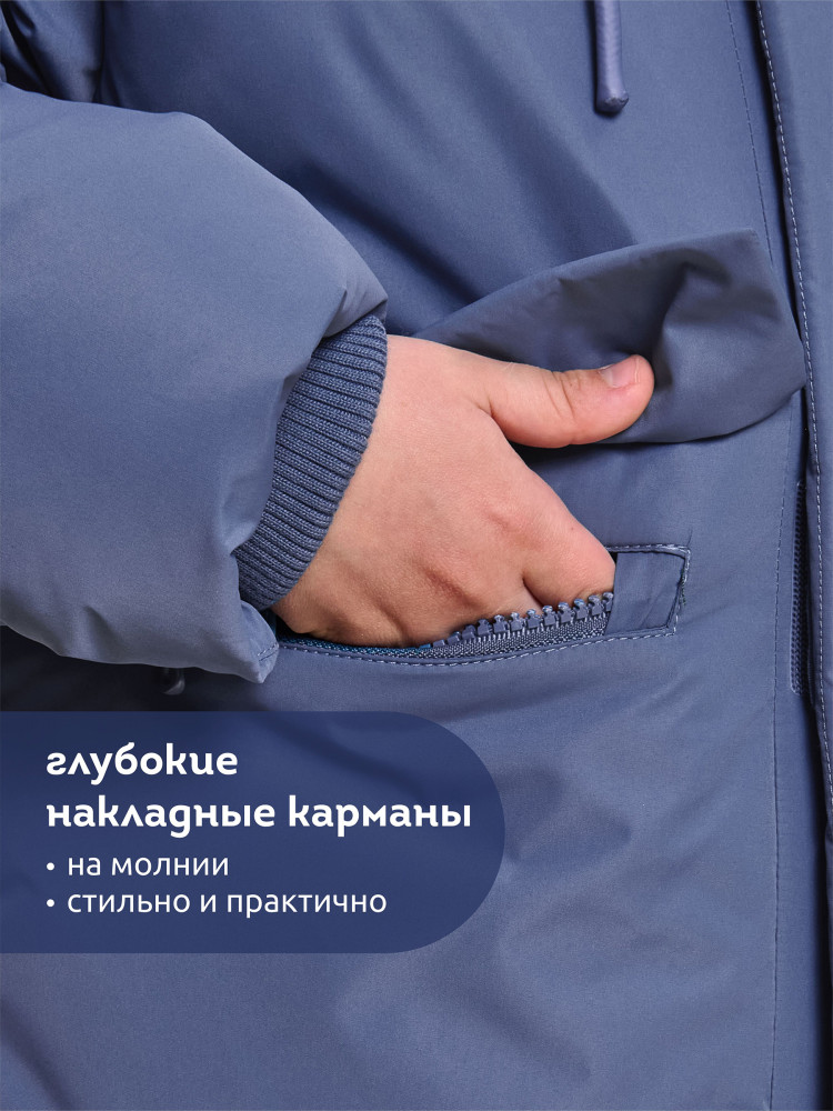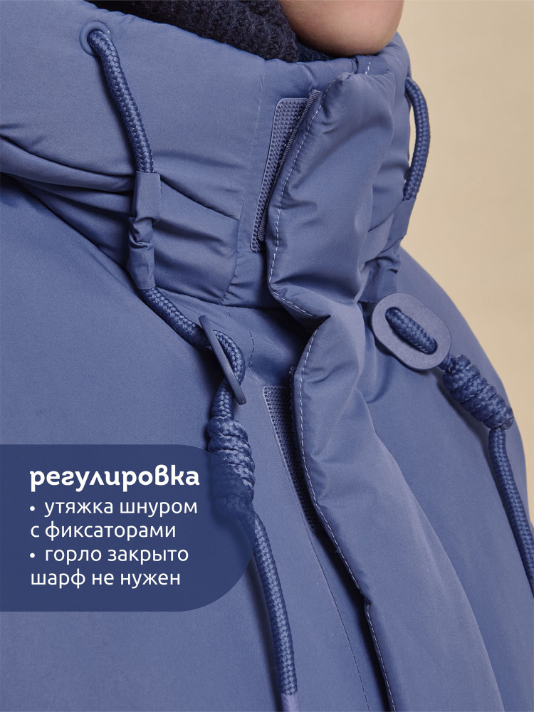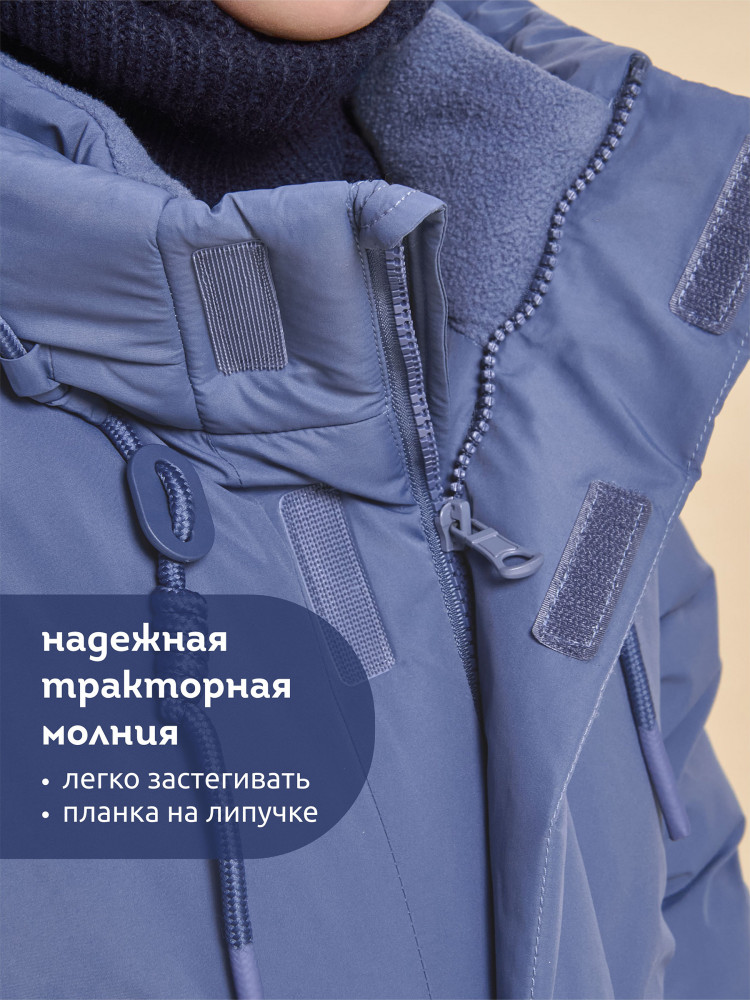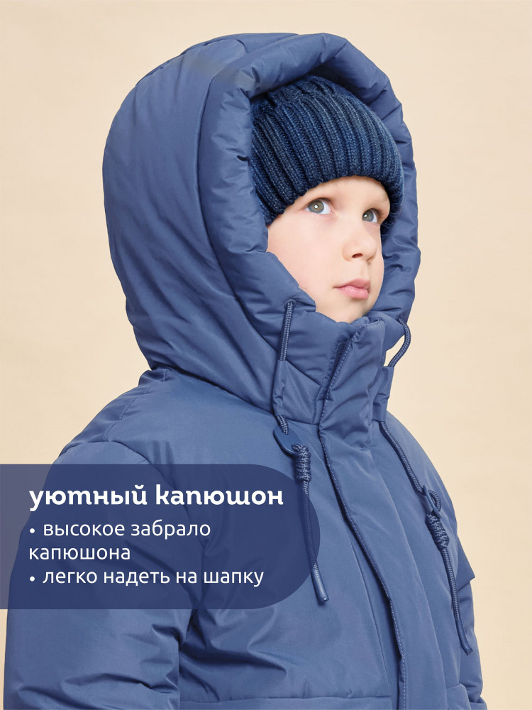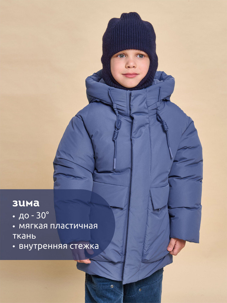 Куртка зимняя для мальчика. Модель прямого силуэта, объем — умеренный оверсайз. Куртка гладкая, без стёжки — суперактуальный тренд сезона. При этом утеплитель простёган внутри изделия — он равномерно распределён и надёжно зафиксирован. На внешнюю поверхность материала нанесена водоотталкивающая пропитка (DWR), она задерживает грязь и влагу снаружи — ребёнок не промокнет от снега, а комбинезон легко отстирается. Также есть дополнительная пропитка на внутренней стороне ткани — для более надёжной защиты от промокания. Капюшон с двумя швами, что обеспечивает анатомически правильную форму и комфортную посадку по голове. Легко одевается на шапку. Высокое забрало капюшона защищает шею и лицо от холода и ветра. Горло закрыто, шарф не нужен. Объём капюшона регулируется эластичным шнуром со стопперами. Центральная застёжка на пластиковую тракторную молнию, разъёмную с двух сторон — удобно садиться, пуллеры металлические, прочные. Сверху планка на велькро (липучках) — быстро застёгивается и расстёгивается. Куртка теплая — центральная молния с изнаночной стороны дополнительно закрыта ветрозащитной планкой. В рукавах внутренние манжеты из эластичной рибаны для защиты от холода и ветра. Рибана приятна на ощупь и при этом надолго сохраняет эластичность, не теряет форму. По переду объёмные накладные карманы с клапанами, закрываются на молнию. Внутренний карман на молнии для важных мелочей. В каждой куртке есть нейм-лейбл! Ребенок не потеряется и не потеряет куртку! В боковых швах и на спинке расположены светоотражающие элементы — безопасность в тёмное время суток. Модель без принта. Зимняя куртка с наполнителем из полиэстера — она тёплая, лёгкая, без проблем стирается, быстро сохнет, сохраняет отличную форму и цвет надолго. Мягкая флисовая подкладка добавляет дополнительную теплоту изделию во время холодов. В рукавах подкладка из гладкого полиэстера для лёгкости надевания. Отличная куртка для мальчика дошкольного и младшего школьного возраста, а также подростка. Идеальный, тёплый и стильный зимний пуховик.