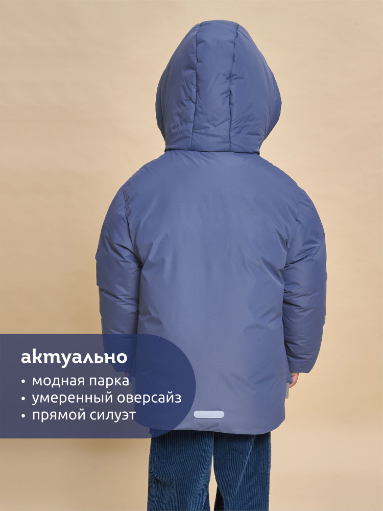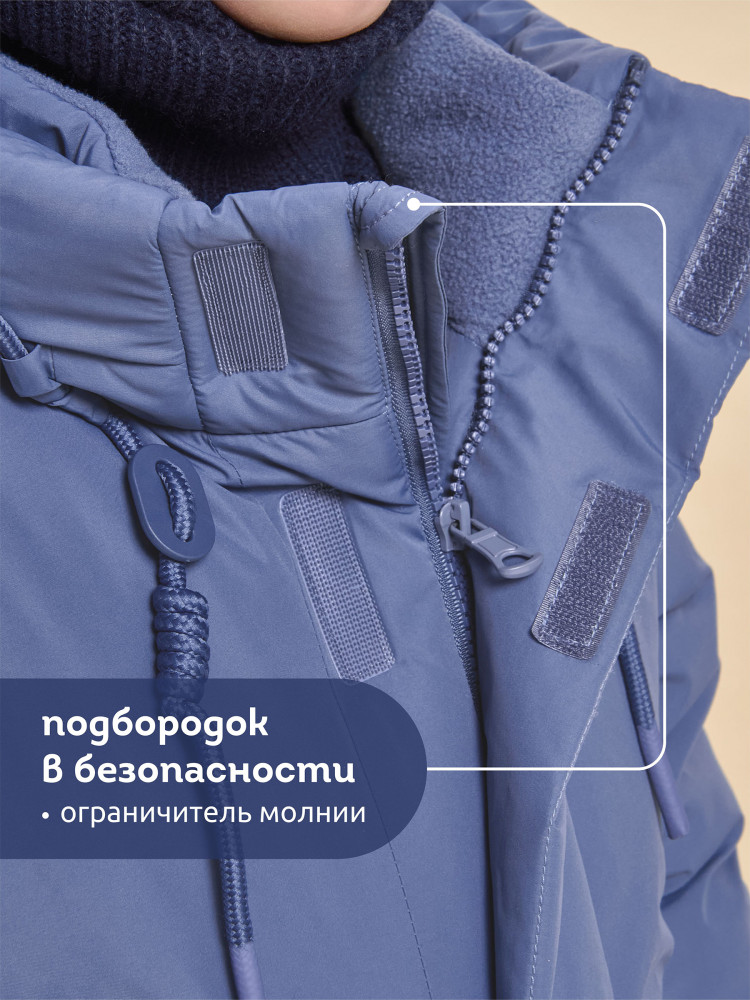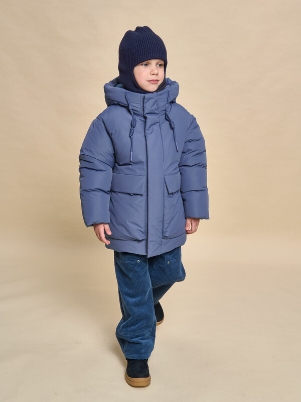 Куртка зимняя для мальчика. Модель прямого силуэта, объем — умеренный оверсайз. Куртка гладкая, без стёжки — суперактуальный тренд сезона. При этом утеплитель простёган внутри изделия — он равномерно распределён и надёжно зафиксирован. На внешнюю поверхность материала нанесена водоотталкивающая пропитка (DWR), она задерживает грязь и влагу снаружи — ребёнок не промокнет от снега, а комбинезон легко отстирается. Также есть дополнительная пропитка на внутренней стороне ткани — для более надёжной защиты от промокания. Капюшон с двумя швами, что обеспечивает анатомически правильную форму и комфортную посадку по голове. Легко одевается на шапку. Высокое забрало капюшона защищает шею и лицо от холода и ветра. Горло закрыто, шарф не нужен. Объём капюшона регулируется эластичным шнуром со стопперами. Центральная застёжка на пластиковую тракторную молнию, разъёмную с двух сторон — удобно садиться, пуллеры металлические, прочные. Сверху планка на велькро (липучках) — быстро застёгивается и расстёгивается. Куртка теплая — центральная молния с изнаночной стороны дополнительно закрыта ветрозащитной планкой. В рукавах внутренние манжеты из эластичной рибаны для защиты от холода и ветра. Рибана приятна на ощупь и при этом надолго сохраняет эластичность, не теряет форму. По переду объёмные накладные карманы с клапанами, закрываются на молнию. Внутренний карман на молнии для важных мелочей. В каждой куртке есть нейм-лейбл! Ребенок не потеряется и не потеряет куртку! В боковых швах и на спинке расположены светоотражающие элементы — безопасность в тёмное время суток. Модель без принта. Зимняя куртка с наполнителем из полиэстера — она тёплая, лёгкая, без проблем стирается, быстро сохнет, сохраняет отличную форму и цвет надолго. Мягкая флисовая подкладка добавляет дополнительную теплоту изделию во время холодов. В рукавах подкладка из гладкого полиэстера для лёгкости надевания. Отличная куртка для мальчика дошкольного и младшего школьного возраста, а также подростка. Идеальный, тёплый и стильный зимний пуховик.
