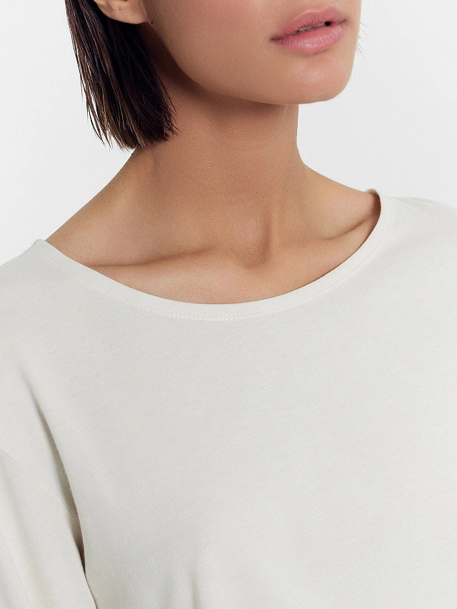 Приятная к телу, при стирке не линяет, все швы остались на месте, хорошая базовая вещь за отличную стоимость.