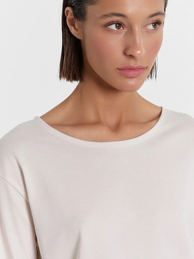 Приятная к телу, при стирке не линяет, все швы остались на месте, хорошая базовая вещь за отличную стоимость.