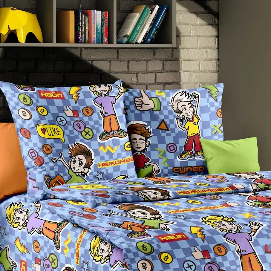 💳 Оплатить за товар можно при получении 🇰🇿 Есть бесплатная доставка по Казахстану от 1 дня 🎁 Копите бонусы с каждой покупки Комплект постельного белья выполнен из мягкого перкаля. Благодаря гипоаллергенным устойчивым красителям, яркие цвета сохранятся даже после многочисленных стирок. Мамы по достоинству оценят качество и натуральность материала. А детям такое белье подарит интересные сны и комфорт на протяжении всей ночи. Дизайн комплекта — яркий, креативный, дерзкий. |