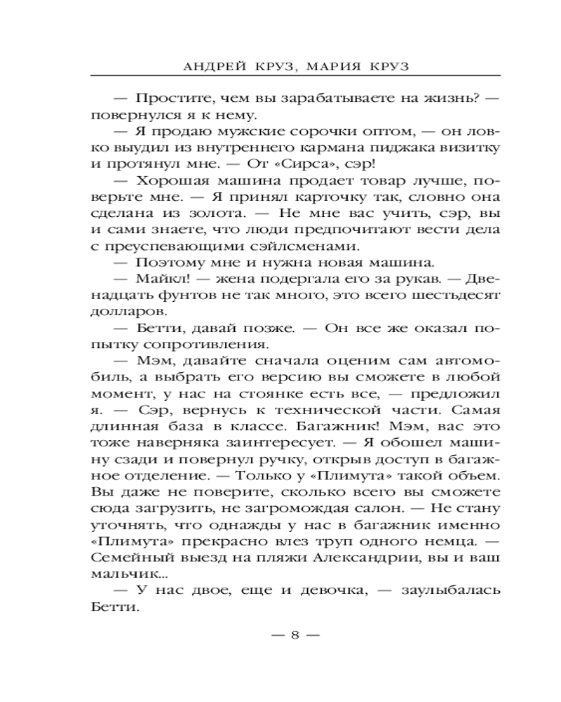 💳 Оплатить за товар можно при получении 🇰🇿 Есть бесплатная доставка по Казахстану от 1 дня 🎁 Копите бонусы с каждой покупки Серия: Боевая фантастика Андрея Круза Если после налета на Каирский бриллиантовый аукцион я решил порвать с прошлым, это совсем не означает, что прошлое безропотно про меня забыло. Поэтому теперь, год спустя, мне, вполне успешному и совершенно легальному бизнесмену, снова придется оглядываться по сторонам и не забывать про «сэведж» в наплечной кобуре. Но я так жить не хочу. У меня большие планы на светлое будущее, которому темное прошлое мешает. Следовательно, остается только одно — сделать так, чтобы про это самое прошлое напоминать мне стало некому. Или, как вариант, устроить кое-кому Очень Большие Неприятности, чтобы очень надолго, а желательно навсегда, им стало не до меня... |
