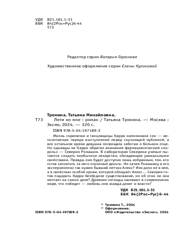 💳 Оплатить за товар можно при получении 🇰🇿 Есть бесплатная доставка по Казахстану от 1 дня 🎁 Копите бонусы с каждой покупки Серия: Нити любви. Романы Т. Трониной (обложка) Что это? Современный любовный роман с элементами магического реализма? Городское фэнтези в русреал сеттинге? Невозможно определить жанр этой необычной истории. Попробуйте соединить миры Александра Беляева и Вениамина Каверина и перенести их в современность, а в основу добавить немного древних легенд. Это история для тех, кто мечтает увидеть чудо — в нынешней реальности, сказку — в настоящем. |